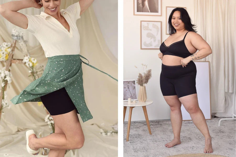 The worst side effect of summer days is the friction the heat can cause between your upper legs. While we’re looking cute in our summer dresses and skirts, excessive sweat is causing our thighs to stick together and slowly creating a rash. It’s uncomfortable and just all around unpleasant! The solution? A pair of athletic shorts! To beat the heat and avoid a rash, I’ve been turning to athletic shorts. I wear them under my skirts and dresses in the summer and they completely remove any thigh rubbing. HOORAY! It’s a simple solution and all you’ll need is the perfect pair of athletic shorts. Here are the keys elements to look for when shopping for athletic shorts to wear with skirts and dresses! 1. Make sure they are breathable Since it’s summertime, you want to make sure you aren’t piling on layers that will make you feel overly hot and sticky. Choose a pair of shorts that are made with breathable fabrics, like lycra and nylon. 2. Make sure they are short enough to be hidden, but long enough to give you coverage The point of wearing shorts under your dresses and skirts is you won’t have to compromise your cute outfit for a practical one. Find a pair of athletic shorts that are long enough to cover yourself so you don’t feel exposed, but short enough to stay hidden under your outfit. 3. Make sure they have a slim fit You’ll feel most comfortable in multiple layers if your athletic shorts are slim-fitting. A looser pair will have you feeling weighed-down, and may look bulky under your outfit. Will you be using this simple trick to save your thighs from chafing? Xo, Rachel Shop our shorts