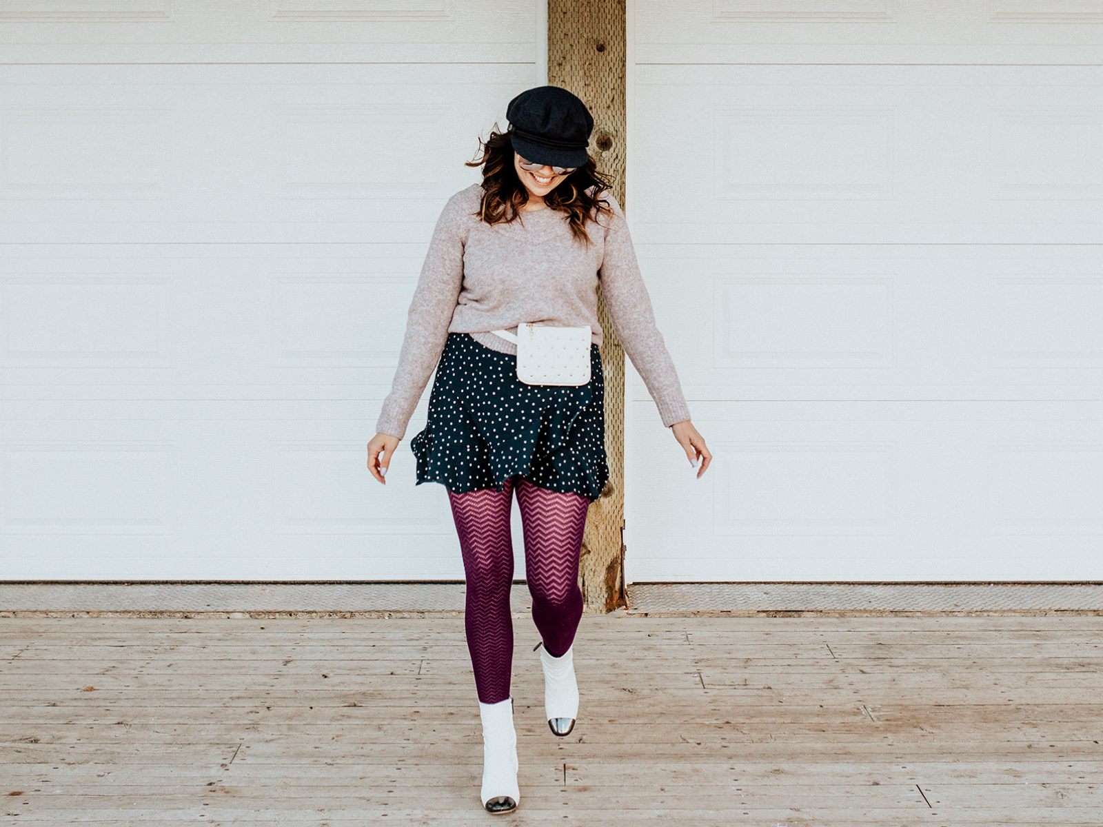 It's that time of year again when we are dying to add some fun hues to our wardrobe. Since spring-like weather is taking its sweet time arriving consider feeling the brightness and happiness of spring with the help of your clothes. By adding a little colour here and there, we can start to transition our outfits into the new season and I have 3 pairs of tights that can help you get there. Here are 3 ways to add some colour to your spring wardrobe! With Textured Plum Chevron Tights Grab your Textured Plum Chevron Tights and start mixing and matching around this hue. With plum tights, neutrals or pastels make a perfect match. After all, pastels have been all the rage the last couple of seasons and this season is no different. As spring is still on the colder side, I opted for a sweater to keep warm. Finally, I also went for a navy bottom to complement both my top and tights. With Textured Mustard Yellow Chevron Tights Mustard yellow is such a bright and powerful colour. It's an ideal shade to pair with a black and white palette for an outfit that just screams spring. The key is to add one other matching accessory to bring your whole look together. I opted for a matching beret, but you could also use a mustard headband, necklace or earrings to complete your outfit. This look is guaranteed to satisfy your spring colour craving. With Textured Emerald Chevron Tights Jewel toned emerald tights are so fun for spring and pink is a the perfect complementary colour. After choosing a colourful blazer, I added a skirt with a touch of pink and a dash of greens to complete my look. This way even though the tights and top are a little darker, these bright pops of colour make your outfit look like a spring bloom. It all comes down to balancing colours to create a look that’s chic, yet fun. How are you adding colour to your outfits this spring? Xo, Sarah